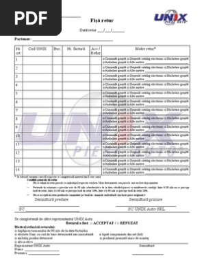 Fisa Retur Marfa Unix